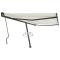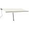 Auvent manuel rétractable sur pied 400x300 cm CrèmeCréez un endroit agréable et frais dans vos espaces extérieurs avec cet auvent rétractable ! Construit avec un cadre en aluminium enduit de poudre résistant à la rouille, cet auvent d'extérieur est léger mais robuste. Le tissu de l'auvent de terrasse est en polyester haute densité avec revêtement de PU, résistant aux UV et à l'eau. De plus, l'angle et la hauteur peuvent être ajustés pour répondre à vos besoins spécifiques. Vous pouvez ouvrir et rétracter le store autoportant en douceur grâce à la longue manivelle. La base robuste peut pivoter à 360 degrés, ce qui permet un ajustement maximal. Le mode d'emploi doit être lu avant le montage et l'utilisation du produit. Conservez ce manuel pour pouvoir vous y référer ultérieurement. Ce produit est destiné à être utilisé à l'extérieur et à l'intérieur comme protection solaire ou décoration uniquement. Ne l'utilisez jamais à d'autres fins et ne le modifiez pas. Ne l'utilisez pas dans des endroits soumis à des vibrations, à des impulsions ou à des températures élevées, comme les murs situés à proximité d'un four. Portez toujours un équipement de protection individuelle approprié lorsque vous montez et réglez le store. Il y a un risque de chute lors de travaux en hauteur, utilisez une protection anti-chute appropriée. Soyez prudent lors de l'installation, des risques d'écrasement et de cisaillement peuvent exister. N'enlevez PAS les bandes de sécurité. Ils ne peuvent être enlevés qu'une fois que toutes les étapes de l'assemblage sont terminées, que tous les boulons sont fixés et que l'article est fixé au mur. Des blessures graves peuvent résulter d'un retrait prématuré de l'emballage. Ce produit et ses pièces de fixation ne conviennent que pour une installation sur un mur en ciment ordinaire ou sur une maçonnerie stable et non enduite. Si le mur/la maçonnerie présente des fissures, vous devez consulter un professionnel. Si votre bâtiment possède une enveloppe extérieure (telle qu'une isolation, un double mur en briques ou un parement en briques), l'installation doit être effectuée par un professionnel. Ne l'installez jamais dans des endroits élevés et venteux, car le parasol pourrait tomber et blesser des personnes. N'installez pas le store si des pièces endommagées ou manquantes sont trouvées. Le store extérieur doit être rétracté si la vitesse du vent est supérieure à 28km/h. Avant d'ouvrir le store, assurez-vous que tous les supports sont solidement fixés aux montants du mur et que tous les boulons sont correctement serrés. FERMEZ TOUJOURS le store en cas de vent fort ou de bourrasque, de pluie et lorsqu'il n'est pas utilisé. Le non-respect de cette consigne peut entraîner des blessures corporelles et/ou des dommages matériels. De plus, les bras d'extension sont soumis à une forte tension et peuvent causer des dommages ou des blessures graves. Les enfants doivent être surveillés pour s'assurer qu'ils ne jouent pas avec l'appareil. N'utilisez pas l'appareil si une réparation ou un réglage est nécessaire. N'utilisez pas le store lorsque des travaux d'entretien, tels que le nettoyage des vitres, sont effectués à proximité. L'utilisation dans des conditions de gel peut endommager le store. Ne placez pas d'objets lourds sur l'armature, car ils pourraient tomber et causer des dommages. Des fixations trop serrées ou trop lâches peuvent endommager le produit ou être dangereuses pour les personnes. Attention : La toile ne doit pas être enfoncée pendant le fonctionnement, sinon l'eau s'y accumulera. Veuillez ne pas décoller et laver le tissu. Si vous devez remplacer le tissu, demandez l'aide d'experts. Faites attention lorsque vous actionnez le déverrouillage manuel alors que le store extérieur est rétracté, car il peut tomber rapidement si les ressorts sont faibles ou cassés. Danger ! Ressort fort lors de l'ouverture. Ne retirez pas cette corde si vous n'avez pas terminé toutes les étapes d'assemblage avec tous les boulons fixés et l'article fixé au mur ! Avertissement! Faire attention en desserrant les bras, car ils sont sous tension ! Un relâchement soudain du bras d'un auvent à bras articulés peut provoquer des blessures. Avertissement : Les instructions d'utilisation doivent être lues avant d'utiliser le produit. Avertissement: Le fonctionnement dans des conditions de gel peut endommager le produit. Utilisation externe dans les bâtiments et autres travaux de construction. GPSR