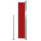La cassette est installée sur un poteau en bois en position verticale et l'auvent rétractable est tiré vers l'extérieur.