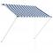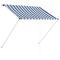 Auvent rétractable 100x150 cm Bleu et blancCet auvent rétractable sera sûrement une option idéale pour une utilisation devant la fenêtre, sur la terrasse, sur le balcon ou dans votre jardin. Cet auvent résistant à l'eau, aux UV et aux intempéries est fabriqué dans un tissu de qualité avec un revêtement en PA. De plus, le cadre en acier solide permet à l'auvent d'être robuste et durable. L'auvent en polyester facile à nettoyer peut être enlevé et lavé. En outre, ce produit peut non seulement être utilisé comme auvent ordinaire, mais également couvrir complètement la fenêtre entre-temps. Grâce à la barre de support et à la chaîne, cet auvent est rétractable. En outre, la hauteur et l'angle de l'auvent peuvent également être réglés. Le produit est facile à assembler. Ce produit doit être installé sur des surfaces lisses et planes.