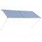 Auvent rétractable 250x150 cm Bleu et blancCet auvent rétractable sera sûrement une option idéale pour une utilisation devant la fenêtre, sur la terrasse, sur le balcon ou dans votre jardin. Cet auvent résistant à l'eau, aux UV et aux intempéries est fabriqué dans un tissu de haute qualité avec un revêtement en PA. De plus, le cadre en acier solide permet à l'auvent d'être robuste et durable. L'auvent en polyester facile à nettoyer peut être enlevé et lavé. En outre, ce produit peut non seulement être utilisé comme auvent ordinaire, mais également couvrir complètement la fenêtre entre-temps. Grâce à la barre de support et à la chaîne, cet auvent est rétractable. En outre, la hauteur et l'angle de l'auvent peuvent également être réglés. Le produit est facile à assembler. Ce produit doit être installé sur des surfaces lisses et planes. GPSR