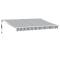 Auvent rétractable anthracite et blanc 3,5x2,5m tissu/aluminiumProfitez d'une boisson fraîche, d'une délicieuse gâterie ou d'une conversation agréable avec des amis sur votre terrasse tout en vous détendant sous cet incroyable auvent rétractable ! Matériau durable : le cadre de l'auvent est en aluminium enduit de poudre, ce qui est robuste et durable. Le tissu avec traitement de surface PU est résistant aux UV. Il protège votre famille ou vos invités des rayons UV et de la lumière éblouissante du soleil. Auvent rétractable : l'auvent de jardin est rétractable pour répondre à vos différents besoins. Il fournit de l' ombre rafraîchissante lorsque vous vous étirez et ne bloque pas la vue lorsqu' il est rétracté aussi. Conception murale : l'auvent de terrasse peut être facilement monté sur le mur à l'aide des supports muraux inclus et n'occupera pas d'espace au sol. Nombreuses applications : l'auvent rétractable présente un design simple et élégant qui s'intégrera parfaitement à votre maison ou dans un cadre commercial. Il convient à de nombreux endroits, tels que les balcons, les patios, les cours, les restaurants, les cafés, les magasins, etc. Danger ! Ressort fort lors de l'ouverture. Ne retirez pas cette corde si vous n'avez pas terminé toutes les étapes d'assemblage avec tous les boulons fixés et l'article fixé au mur ! Avertissement! Faire attention en desserrant les bras, car ils sont sous tension ! Un relâchement soudain du bras d'un auvent à bras articulés peut provoquer des blessures. Avertissement : Les instructions d'utilisation doivent être lues avant d'utiliser le produit. Avertissement: Le fonctionnement dans des conditions de gel peut endommager le produit. Utilisation externe dans les bâtiments et autres travaux de construction. Ne laissez pas les enfants jouer avec le dispositif de commande du store. Gardez la télécommande hors de portée des enfants.