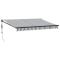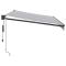 Auvent rétractable anthracite et blanc 3,5x2,5m tissu/aluminiumProfitez d'une boisson fraîche, d'une délicieuse gâterie ou d'une conversation agréable avec des amis sur votre terrasse tout en vous détendant sous cet incroyable auvent rétractable ! Matériau durable : le cadre de l'auvent est en aluminium enduit de poudre, ce qui est robuste et durable. Le tissu avec traitement de surface PU est résistant aux UV. Il protège votre famille ou vos invités des rayons UV et de la lumière éblouissante du soleil. Auvent rétractable : l'auvent de jardin est rétractable pour répondre à vos différents besoins. Il fournit de l' ombre rafraîchissante lorsque vous vous étirez et ne bloque pas la vue lorsqu' il est rétracté aussi. Conception murale : l'auvent de terrasse peut être facilement monté sur le mur à l'aide des supports muraux inclus et n'occupera pas d'espace au sol. Nombreuses applications : l'auvent rétractable présente un design simple et élégant qui s'intégrera parfaitement à votre maison ou dans un cadre commercial. Il convient à de nombreux endroits, tels que les balcons, les patios, les cours, les restaurants, les cafés, les magasins, etc. Cet appareil peut être utilisé par des enfants âgés de 8 ans et plus et par des personnes dont les capacités physiques, sensorielles ou mentales sont réduites ou qui manquent d'expérience et de connaissances, à condition qu'ils aient reçu une surveillance ou des instructions concernant l'utilisation de l'appareil en toute sécurité et qu'ils comprennent les risques encourus. Les enfants ne doivent pas jouer avec l'appareil. Le nettoyage et l'entretien ne doivent pas être effectués par des enfants sans surveillance. Si le cordon d'alimentation est endommagé, il doit être remplacé par le fabricant, son agent de service ou des personnes de qualification similaire afin d'éviter tout danger. AVERTISSEMENT : Consignes de sécurité importantes. Il est important pour la sécurité des personnes de suivre ces instructions. Conservez ces instructions. AVERTISSEMENT : Instructions de sécurité importantes. Suivez toutes les instructions car une installation incorrecte peut entraîner des blessures graves, voire mortelles. Ne laissez pas les enfants jouer avec le dispositif de contrôle. Gardez la télécommande hors de portée des enfants. Ne pas faire fonctionner le store lorsque des travaux d'entretien, tels que le nettoyage des vitres, sont effectués à proximité. Les parties mobiles de l'entraînement doivent être installées à plus de 2,5 m au-dessus du sol ou d'un autre niveau permettant d'y accéder. Avant d'installer le variateur, retirez tous les cordons inutiles et désactivez tous les équipements qui ne sont pas nécessaires au fonctionnement sous tension. L'organe de commande d'un interrupteur à rappel automatique doit être situé en vue directe de la pièce commandée, mais à l'écart des pièces mobiles. Il doit être installé à une hauteur minimale de 1,5 m.Danger ! Ressort fort lors de l'ouverture. Ne retirez pas cette corde si vous n'avez pas terminé toutes les étapes d'assemblage avec tous les boulons fixés et l'article fixé au mur ! Avertissement! Faire attention en desserrant les bras, car ils sont sous tension ! Un relâchement soudain du bras d'un auvent à bras articulés peut provoquer des blessures. Avertissement : Les instructions d'utilisation doivent être lues avant d'utiliser le produit. Avertissement: Le fonctionnement dans des conditions de gel peut endommager le produit. Utilisation externe dans les bâtiments et autres travaux de construction. GPSR