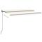 Auvent rétractable automatique 400x350 cm CrèmeCréez un endroit agréable et frais dans vos espaces extérieurs avec cet auvent rétractable ! Cet auvent d'extérieur est construit avec un cadre en aluminium enduit de poudre résistant à la rouille, ce qui le rend léger mais robuste. Le tissu de l'auvent de patio est en polyester haute densité avec revêtement en PU, résistant aux UV et à l'eau. De plus, l'angle et la hauteur peuvent être réglés selon vos préférences. Vous pouvez facilement ouvrir et rétracter le store rétractable automatique avec la télécommande incluse. De plus, la longue manivelle permet de contrôler le store en douceur. Les enfants doivent être surveillés pour s'assurer qu'ils ne jouent pas avec l'appareil.Tenez les enfants éloignés de la zone de montage. Attention : lisez attentivement les instructions avant l'utilisation et les conserver pour référence ultérieure.