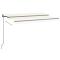 Auvent rétractable automatique 450x300 cm CrèmeCréez un endroit agréable et frais dans vos espaces extérieurs avec cet auvent rétractable ! Cet auvent d'extérieur est construit avec un cadre en aluminium enduit de poudre résistant à la rouille, ce qui le rend léger mais robuste. Le tissu de l'auvent de patio est en polyester haute densité avec revêtement en PU, résistant aux UV et à l'eau. De plus, l'angle et la hauteur peuvent être réglés selon vos préférences. Vous pouvez facilement ouvrir et rétracter le store rétractable automatique avec la télécommande incluse. De plus, la longue manivelle permet de contrôler le store en douceur. Les enfants doivent être surveillés pour s'assurer qu'ils ne jouent pas avec l'appareil.Tenez les enfants éloignés de la zone de montage. Attention : lisez attentivement les instructions avant l'utilisation et les conserver pour référence ultérieure.