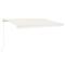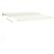Auvent rétractable automatique 450x300 cm CrèmeCréez un endroit agréable et frais dans vos espaces extérieurs avec cet auvent rétractable ! Cet auvent d'extérieur est construit avec un cadre en aluminium enduit de poudre résistant à la rouille, ce qui le rend léger mais robuste. Le tissu de l'auvent de patio est en polyester haute densité avec revêtement en PU, résistant aux UV et à l'eau. De plus, l'angle et la hauteur peuvent être réglés selon vos préférences. Vous pouvez facilement ouvrir et rétracter le store rétractable automatique avec la télécommande incluse. De plus, la longue manivelle permet de contrôler le store en douceur. Les enfants doivent être surveillés pour s'assurer qu'ils ne jouent pas avec l'appareil.Tenez les enfants éloignés de la zone de montage. Attention : lisez attentivement les instructions avant l'utilisation et les conserver pour référence ultérieure.
