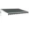 Auvent rétractable automatique anthracite 3,5x2,5 mProfitez d'une boisson fraîche, d'une délicieuse gâterie ou d'une conversation agréable avec des amis sur votre terrasse tout en vous détendant sous cet incroyable auvent rétractable automatique ! Matériau durable : le cadre de l'auvent est en aluminium enduit de poudre, ce qui est robuste et durable. Le tissu avec traitement de surface PU est résistant aux UV. Il protège votre famille ou vos invités des rayons UV et de la lumière éblouissante du soleil. Auvent rétractable : l'auvent de jardin est rétractable pour répondre à vos différents besoins. Il fournit de l' ombre rafraîchissante lorsque vous vous étirez et ne bloque pas la vue lorsqu' il est rétracté aussi. Fonctionnement facile : vous pouvez facilement ouvrir et rétracter l'auvent de jardin à l'aide de la télécommande fournie. La longue manivelle permet également de contrôler l'auvent extérieur en douceur lorsqu'il n'y a pas d'électricité. L'assemblage de cet auvent rétractable est facile. Conception murale : l'auvent de terrasse peut être facilement monté sur le mur à l'aide des supports muraux inclus et n'occupera pas d'espace au sol. Nombreuses applications : l'auvent électrique présente un design simple et élégant qui s'intégrera bien dans votre maison ou environnement commercial. Il convient à une variété d'endroits, tels que les balcons, les patios, les cours, les restaurants, les cafés, les magasins, et plus encore. Danger ! Ressort fort lors de l'ouverture. Ne retirez pas cette corde si vous n'avez pas terminé toutes les étapes d'assemblage avec tous les boulons fixés et l'article fixé au mur ! Avertissement! Faire attention en desserrant les bras, car ils sont sous tension ! Un relâchement soudain du bras d'un auvent à bras articulés peut provoquer des blessures. Avertissement : Les instructions d'utilisation doivent être lues avant d'utiliser le produit. Avertissement: Le fonctionnement dans des conditions de gel peut endommager le produit. Utilisation externe dans les bâtiments et autres travaux de construction. Ne laissez pas les enfants jouer avec le dispositif de commande du store. Gardez la télécommande hors de portée des enfants.