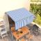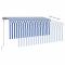 Auvent rétractable automatique avec store 3x2,5 m Bleu et blancCréez un endroit agréable et frais dans vos espaces extérieurs avec cet auvent rétractable ! Cet auvent d'extérieur est construit avec un cadre en aluminium enduit de poudre résistant à la rouille, ce qui le rend léger mais robuste. Le tissu de l'auvent de patio est en polyester haute densité avec revêtement en PU, résistant aux UV et à l'eau. De plus, l'angle et la hauteur peuvent être réglés selon vos préférences. Vous pouvez facilement ouvrir et rétracter le store rétractable automatique avec la télécommande incluse. De plus, la longue manivelle permet de contrôler le store en douceur. Le store vous protège des rayons UV et offre une protection de l'intimité. Les enfants doivent être surveillés pour s'assurer qu'ils ne jouent pas avec l'appareil.Tenez les enfants éloignés de la zone de montage. Attention : lisez attentivement les instructions avant l'utilisation et les conserver pour référence ultérieure.