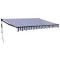 Auvent rétractable automatique bleu et blanc 3x2,5 mProfitez d'une boisson fraîche, d'une délicieuse gâterie ou d'une conversation agréable avec des amis sur votre terrasse tout en vous détendant sous cet incroyable auvent rétractable automatique ! Matériau durable : le cadre de l'auvent est en aluminium enduit de poudre, ce qui est robuste et durable. Le tissu avec traitement de surface PU est résistant aux UV. Il protège votre famille ou vos invités des rayons UV et de la lumière éblouissante du soleil. Auvent rétractable : l'auvent de jardin est rétractable pour répondre à vos différents besoins. Il fournit de l' ombre rafraîchissante lorsque vous vous étirez et ne bloque pas la vue lorsqu' il est rétracté aussi. Fonctionnement facile : vous pouvez facilement ouvrir et rétracter l'auvent de jardin à l'aide de la télécommande fournie. La longue manivelle permet également de contrôler l'auvent extérieur en douceur lorsqu'il n'y a pas d'électricité. L'assemblage de cet auvent rétractable est facile. Conception murale : l'auvent de terrasse peut être facilement monté sur le mur à l'aide des supports muraux inclus et n'occupera pas d'espace au sol. Nombreuses applications : l'auvent électrique présente un design simple et élégant qui s'intégrera bien dans votre maison ou environnement commercial. Il convient à une variété d'endroits, tels que les balcons, les patios, les cours, les restaurants, les cafés, les magasins, et plus encore. Les enfants doivent être surveillés pour s'assurer qu'ils ne jouent pas avec l'appareil.Tenez les enfants éloignés de la zone de montage. Attention : lisez attentivement les instructions avant l'utilisation et les conserver pour référence ultérieure.