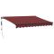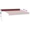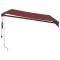 Auvent rétractable automatique bordeaux 300x250 cmCréez un endroit agréable et frais sur votre terrasse et protégez-vous des rayons UV avec cet auvent rétractable ! Matériau durable : le cadre de l'auvent est en aluminium enduit de poudre, ce qui est robuste et durable. Le tissu avec traitement de surface PU est résistant aux UV. Il protège votre famille ou vos invités des rayons UV et de la lumière éblouissante du soleil.Fonction automatique : vous pouvez facilement ouvrir et rétracter le store à l'aide de la télécommande fournie.Facile à utiliser : l'angle et la hauteur peuvent être réglés pour répondre à vos différents besoins. La manivelle permet d'ouvrir et de rétracter le store en douceur.Multifonctionnel : l'auvent rétractable présente un design simple et élégant qui s'intégrera parfaitement à votre maison ou dans un cadre commercial. Il convient à de nombreux endroits, tels que les balcons, les patios, les cours, les restaurants, les cafés, les magasins, etc. Les enfants doivent être surveillés pour s'assurer qu'ils ne jouent pas avec l'appareil.Tenez les enfants éloignés de la zone de montage. Attention : lisez attentivement les instructions avant l'utilisation et les conserver pour référence ultérieure.