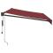 Auvent rétractable automatique bordeaux 350x250 cmCréez un endroit agréable et frais sur votre terrasse et protégez-vous des rayons UV avec cet auvent rétractable ! Matériau durable : le cadre de l'auvent est en aluminium enduit de poudre, ce qui est robuste et durable. Le tissu avec traitement de surface PU est résistant aux UV. Il protège votre famille ou vos invités des rayons UV et de la lumière éblouissante du soleil. Fonction automatique : vous pouvez facilement ouvrir et rétracter le store à l'aide de la télécommande fournie. Facile à utiliser : l'angle et la hauteur peuvent être réglés pour répondre à vos différents besoins. La manivelle permet d'ouvrir et de rétracter le store en douceur. Multifonctionnel : l'auvent rétractable présente un design simple et élégant qui s'intégrera parfaitement à votre maison ou dans un cadre commercial. Il convient à de nombreux endroits, tels que les balcons, les patios, les cours, les restaurants, les cafés, les magasins, etc. Cet appareil peut être utilisé par des enfants âgés de 8 ans et plus et par des personnes dont les capacités physiques, sensorielles ou mentales sont réduites ou qui manquent d'expérience et de connaissances, à condition qu'ils aient reçu une surveillance ou des instructions concernant l'utilisation de l'appareil en toute sécurité et qu'ils comprennent les risques encourus. Les enfants ne doivent pas jouer avec l'appareil. Le nettoyage et l'entretien ne doivent pas être effectués par des enfants sans surveillance. Si le cordon d'alimentation est endommagé, il doit être remplacé par le fabricant, son agent de service ou des personnes de qualification similaire afin d'éviter tout danger. AVERTISSEMENT : Consignes de sécurité importantes. Il est important pour la sécurité des personnes de suivre ces instructions. Conservez ces instructions. AVERTISSEMENT : Instructions de sécurité importantes. Suivez toutes les instructions car une installation incorrecte peut entraîner des blessures graves, voire mortelles. Ne laissez pas les enfants jouer avec le dispositif de contrôle. Gardez la télécommande hors de portée des enfants. Ne pas faire fonctionner le store lorsque des travaux d'entretien, tels que le nettoyage des vitres, sont effectués à proximité. Les parties mobiles de l'entraînement doivent être installées à plus de 2,5 m au-dessus du sol ou d'un autre niveau permettant d'y accéder. Avant d'installer le variateur, retirez tous les cordons inutiles et désactivez tous les équipements qui ne sont pas nécessaires au fonctionnement sous tension. L'organe de commande d'un interrupteur à rappel automatique doit être situé en vue directe de la pièce commandée, mais à l'écart des pièces mobiles. Il doit être installé à une hauteur minimale de 1,5 m.Danger ! Ressort fort lors de l'ouverture. Ne retirez pas cette corde si vous n'avez pas terminé toutes les étapes d'assemblage avec tous les boulons fixés et l'article fixé au mur ! Avertissement! Faire attention en desserrant les bras, car ils sont sous tension ! Un relâchement soudain du bras d'un auvent à bras articulés peut provoquer des blessures. Avertissement : Les instructions d'utilisation doivent être lues avant d'utiliser le produit. Avertissement: Le fonctionnement dans des conditions de gel peut endommager le produit. Utilisation externe dans les bâtiments et autres travaux de construction. GPSR