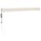 Auvent rétractable automatique crème 3x2,5 mProfitez d'une boisson fraîche, d'une délicieuse gâterie ou d'une conversation agréable avec des amis sur votre terrasse tout en vous détendant sous cet incroyable auvent rétractable automatique ! Matériau durable : le cadre de l'auvent est en aluminium enduit de poudre, ce qui est robuste et durable. Le tissu avec traitement de surface PU est résistant aux UV. Il protège votre famille ou vos invités des rayons UV et de la lumière éblouissante du soleil. Auvent rétractable : l'auvent de jardin est rétractable pour répondre à vos différents besoins. Il fournit de l' ombre rafraîchissante lorsque vous vous étirez et ne bloque pas la vue lorsqu' il est rétracté aussi. Fonctionnement facile : vous pouvez facilement ouvrir et rétracter l'auvent de jardin à l'aide de la télécommande fournie. La longue manivelle permet également de contrôler l'auvent extérieur en douceur lorsqu'il n'y a pas d'électricité. L'assemblage de cet auvent rétractable est facile. Conception murale : l'auvent de terrasse peut être facilement monté sur le mur à l'aide des supports muraux inclus et n'occupera pas d'espace au sol. Nombreuses applications : l'auvent électrique présente un design simple et élégant qui s'intégrera bien dans votre maison ou environnement commercial. Il convient à une variété d'endroits, tels que les balcons, les patios, les cours, les restaurants, les cafés, les magasins, et plus encore. Danger ! Ressort fort lors de l'ouverture. Ne retirez pas cette corde si vous n'avez pas terminé toutes les étapes d'assemblage avec tous les boulons fixés et l'article fixé au mur ! Avertissement! Faire attention en desserrant les bras, car ils sont sous tension ! Un relâchement soudain du bras d'un auvent à bras articulés peut provoquer des blessures. Avertissement : Les instructions d'utilisation doivent être lues avant d'utiliser le produit. Avertissement: Le fonctionnement dans des conditions de gel peut endommager le produit. Utilisation externe dans les bâtiments et autres travaux de construction. Ne laissez pas les enfants jouer avec le dispositif de commande du store. Gardez la télécommande hors de portée des enfants. GPSR