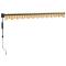 Auvent rétractable automatique jaune et blanc 3,5x2,5 mProfitez d'une boisson fraîche, d'une délicieuse gâterie ou d'une conversation agréable avec des amis sur votre terrasse tout en vous détendant sous cet incroyable auvent rétractable automatique ! Matériau durable : le cadre de l'auvent est en aluminium enduit de poudre, ce qui est robuste et durable. Le tissu avec traitement de surface PU est résistant aux UV. Il protège votre famille ou vos invités des rayons UV et de la lumière éblouissante du soleil. Auvent rétractable : l'auvent de jardin est rétractable pour répondre à vos différents besoins. Il fournit de l' ombre rafraîchissante lorsque vous vous étirez et ne bloque pas la vue lorsqu' il est rétracté aussi. Fonctionnement facile : vous pouvez facilement ouvrir et rétracter l'auvent de jardin à l'aide de la télécommande fournie. La longue manivelle permet également de contrôler l'auvent extérieur en douceur lorsqu'il n'y a pas d'électricité. L'assemblage de cet auvent rétractable est facile. Conception murale : l'auvent de terrasse peut être facilement monté sur le mur à l'aide des supports muraux inclus et n'occupera pas d'espace au sol. Nombreuses applications : l'auvent électrique présente un design simple et élégant qui s'intégrera bien dans votre maison ou environnement commercial. Il convient à une variété d'endroits, tels que les balcons, les patios, les cours, les restaurants, les cafés, les magasins, et plus encore. Cet appareil peut être utilisé par des enfants âgés de 8 ans et plus et par des personnes dont les capacités physiques, sensorielles ou mentales sont réduites ou qui manquent d'expérience et de connaissances, à condition qu'ils aient reçu une surveillance ou des instructions concernant l'utilisation de l'appareil en toute sécurité et qu'ils comprennent les risques encourus. Les enfants ne doivent pas jouer avec l'appareil. Le nettoyage et l'entretien ne doivent pas être effectués par des enfants sans surveillance. Si le cordon d'alimentation est endommagé, il doit être remplacé par le fabricant, son agent de service ou des personnes de qualification similaire afin d'éviter tout danger. AVERTISSEMENT : Consignes de sécurité importantes. Il est important pour la sécurité des personnes de suivre ces instructions. Conservez ces instructions. AVERTISSEMENT : Instructions de sécurité importantes. Suivez toutes les instructions car une installation incorrecte peut entraîner des blessures graves, voire mortelles. Ne laissez pas les enfants jouer avec le dispositif de contrôle. Gardez la télécommande hors de portée des enfants. Ne pas faire fonctionner le store lorsque des travaux d'entretien, tels que le nettoyage des vitres, sont effectués à proximité. Les parties mobiles de l'entraînement doivent être installées à plus de 2,5 m au-dessus du sol ou d'un autre niveau permettant d'y accéder. Avant d'installer le variateur, retirez tous les cordons inutiles et désactivez tous les équipements qui ne sont pas nécessaires au fonctionnement sous tension. L'organe de commande d'un interrupteur à rappel automatique doit être situé en vue directe de la pièce commandée, mais à l'écart des pièces mobiles. Il doit être installé à une hauteur minimale de 1,5 m.Danger ! Ressort fort lors de l'ouverture. Ne retirez pas cette corde si vous n'avez pas terminé toutes les étapes d'assemblage avec tous les boulons fixés et l'article fixé au mur ! Avertissement! Faire attention en desserrant les bras, car ils sont sous tension ! Un relâchement soudain du bras d'un auvent à bras articulés peut provoquer des blessures. Avertissement : Les instructions d'utilisation doivent être lues avant d'utiliser le produit. Avertissement: Le fonctionnement dans des conditions de gel peut endommager le produit. Utilisation externe dans les bâtiments et autres travaux de construction. GPSR
