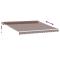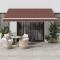 Auvent rétractable automatique marron 400x300 cmCréez un endroit agréable et frais sur votre terrasse et protégez-vous des rayons UV avec cet auvent rétractable ! Matériau durable : le cadre de l'auvent est en aluminium enduit de poudre, ce qui est robuste et durable. Le tissu avec traitement de surface PU est résistant aux UV. Il protège votre famille ou vos invités des rayons UV et de la lumière éblouissante du soleil.Fonction automatique : vous pouvez facilement ouvrir et rétracter le store à l'aide de la télécommande fournie.Facile à utiliser : l'angle et la hauteur peuvent être réglés pour répondre à vos différents besoins. La manivelle permet d'ouvrir et de rétracter le store en douceur.Multifonctionnel : l'auvent rétractable présente un design simple et élégant qui s'intégrera parfaitement à votre maison ou dans un cadre commercial. Il convient à de nombreux endroits, tels que les balcons, les patios, les cours, les restaurants, les cafés, les magasins, etc. Les enfants doivent être surveillés pour s'assurer qu'ils ne jouent pas avec l'appareil.Tenez les enfants éloignés de la zone de montage. Attention : lisez attentivement les instructions avant l'utilisation et les conserver pour référence ultérieure.