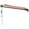 Auvent rétractable automatique orange et marron 3,5x2,5 mProfitez d'une boisson fraîche, d'une délicieuse gâterie ou d'une conversation agréable avec des amis sur votre terrasse tout en vous détendant sous cet incroyable auvent rétractable automatique ! Matériau durable : le cadre de l'auvent est en aluminium enduit de poudre, ce qui est robuste et durable. Le tissu avec traitement de surface PU est résistant aux UV. Il protège votre famille ou vos invités des rayons UV et de la lumière éblouissante du soleil. Auvent rétractable : l'auvent de jardin est rétractable pour répondre à vos différents besoins. Il fournit de l' ombre rafraîchissante lorsque vous vous étirez et ne bloque pas la vue lorsqu' il est rétracté aussi. Fonctionnement facile : vous pouvez facilement ouvrir et rétracter l'auvent de jardin à l'aide de la télécommande fournie. La longue manivelle permet également de contrôler l'auvent extérieur en douceur lorsqu'il n'y a pas d'électricité. L'assemblage de cet auvent rétractable est facile. Conception murale : l'auvent de terrasse peut être facilement monté sur le mur à l'aide des supports muraux inclus et n'occupera pas d'espace au sol. Nombreuses applications : l'auvent électrique présente un design simple et élégant qui s'intégrera bien dans votre maison ou environnement commercial. Il convient à une variété d'endroits, tels que les balcons, les patios, les cours, les restaurants, les cafés, les magasins, et plus encore. Cet appareil peut être utilisé par des enfants âgés de 8 ans et plus et par des personnes dont les capacités physiques, sensorielles ou mentales sont réduites ou qui manquent d'expérience et de connaissances, à condition qu'ils aient reçu une surveillance ou des instructions concernant l'utilisation de l'appareil en toute sécurité et qu'ils comprennent les risques encourus. Les enfants ne doivent pas jouer avec l'appareil. Le nettoyage et l'entretien ne doivent pas être effectués par des enfants sans surveillance. Si le cordon d'alimentation est endommagé, il doit être remplacé par le fabricant, son agent de service ou des personnes de qualification similaire afin d'éviter tout danger. AVERTISSEMENT : Consignes de sécurité importantes. Il est important pour la sécurité des personnes de suivre ces instructions. Conservez ces instructions. AVERTISSEMENT : Instructions de sécurité importantes. Suivez toutes les instructions car une installation incorrecte peut entraîner des blessures graves, voire mortelles. Ne laissez pas les enfants jouer avec le dispositif de contrôle. Gardez la télécommande hors de portée des enfants. Ne pas faire fonctionner le store lorsque des travaux d'entretien, tels que le nettoyage des vitres, sont effectués à proximité. Les parties mobiles de l'entraînement doivent être installées à plus de 2,5 m au-dessus du sol ou d'un autre niveau permettant d'y accéder. Avant d'installer le variateur, retirez tous les cordons inutiles et désactivez tous les équipements qui ne sont pas nécessaires au fonctionnement sous tension. L'organe de commande d'un interrupteur à rappel automatique doit être situé en vue directe de la pièce commandée, mais à l'écart des pièces mobiles. Il doit être installé à une hauteur minimale de 1,5 m.Les enfants doivent être surveillés pour s'assurer qu'ils ne jouent pas avec l'appareil. Gardez les enfants éloignés de la zone d'assemblage. Avertissement : lisez attentivement les instructions avant d'utiliser l'appareil et conservez-les pour toute référence ultérieure.Danger ! Ressort fort lors de l'ouverture. Ne retirez pas cette corde si vous n'avez pas terminé toutes les étapes d'assemblage avec tous les boulons fixés et l'article fixé au mur ! Avertissement! Faire attention en desserrant les bras, car ils sont sous tension ! Un relâchement soudain du bras d'un auvent à bras articulés peut provoquer des blessures. Avertissement : Les instructions d'utilisation doivent être lues avant d'utiliser le produit. Avertissement: Le fonctionnement dans des conditions de gel peut endommager le produit. Utilisation externe dans les bâtiments et autres travaux de construction. GPSR