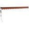 Auvent rétractable automatique orange et marron 4,5x3 mProfitez d'une boisson fraîche, d'une délicieuse gâterie ou d'une conversation agréable avec des amis sur votre terrasse tout en vous détendant sous cet incroyable auvent rétractable automatique ! Matériau durable : le cadre de l'auvent est en aluminium enduit de poudre, ce qui est robuste et durable. Le tissu avec traitement de surface PU est résistant aux UV. Il protège votre famille ou vos invités des rayons UV et de la lumière éblouissante du soleil. Auvent rétractable : l'auvent de jardin est rétractable pour répondre à vos différents besoins. Il fournit de l' ombre rafraîchissante lorsque vous vous étirez et ne bloque pas la vue lorsqu' il est rétracté aussi. Fonctionnement facile : vous pouvez facilement ouvrir et rétracter l'auvent de jardin à l'aide de la télécommande fournie. La longue manivelle permet également de contrôler l'auvent extérieur en douceur lorsqu'il n'y a pas d'électricité. L'assemblage de cet auvent rétractable est facile. Conception murale : l'auvent de terrasse peut être facilement monté sur le mur à l'aide des supports muraux inclus et n'occupera pas d'espace au sol. Nombreuses applications : l'auvent électrique présente un design simple et élégant qui s'intégrera bien dans votre maison ou environnement commercial. Il convient à une variété d'endroits, tels que les balcons, les patios, les cours, les restaurants, les cafés, les magasins, et plus encore. Les enfants doivent être surveillés pour s'assurer qu'ils ne jouent pas avec l'appareil.Tenez les enfants éloignés de la zone de montage. Attention : lisez attentivement les instructions avant l'utilisation et les conserver pour référence ultérieure.