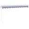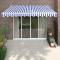 Auvent rétractable bleu et blanc 3x2,5 m tissu et aluminiumProfitez d'une boisson fraîche, d'une délicieuse gâterie ou d'une conversation agréable avec des amis sur votre terrasse tout en vous détendant sous cet incroyable auvent rétractable ! Matériau durable : le cadre de l'auvent est en aluminium enduit de poudre, ce qui est robuste et durable. Le tissu avec traitement de surface PU est résistant aux UV. Il protège votre famille ou vos invités des rayons UV et de la lumière éblouissante du soleil.Auvent rétractable : l'auvent de porte est rétractable pour répondre à vos différents besoins. Il fournit une ombre rafraîchissante lorsqu'il est tendu et ne bloque pas la vue lorsqu'il est contracté.Conception murale : l'auvent de terrasse peut être facilement monté sur le mur à l'aide des supports muraux inclus et n'occupera pas d'espace au sol.Nombreuses applications : l'auvent rétractable présente un design simple et élégant qui s'intégrera parfaitement à votre maison ou dans un cadre commercial. Il convient à de nombreux endroits, tels que les balcons, les patios, les cours, les restaurants, les cafés, les magasins, etc. Les enfants doivent être surveillés pour s'assurer qu'ils ne jouent pas avec l'appareil.Tenez les enfants éloignés de la zone de montage. Attention : lisez attentivement les instructions avant l'utilisation et les conserver pour référence ultérieure.