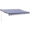 Auvent rétractable bleu et blanc 3x2,5 m tissu et aluminiumProfitez d'une boisson fraîche, d'une délicieuse gâterie ou d'une conversation agréable avec des amis sur votre terrasse tout en vous détendant sous cet incroyable auvent rétractable ! Matériau durable : le cadre de l'auvent est en aluminium enduit de poudre, ce qui est robuste et durable. Le tissu avec traitement de surface PU est résistant aux UV. Il protège votre famille ou vos invités des rayons UV et de la lumière éblouissante du soleil.Auvent rétractable : l'auvent de porte est rétractable pour répondre à vos différents besoins. Il fournit une ombre rafraîchissante lorsqu'il est tendu et ne bloque pas la vue lorsqu'il est contracté.Conception murale : l'auvent de terrasse peut être facilement monté sur le mur à l'aide des supports muraux inclus et n'occupera pas d'espace au sol.Nombreuses applications : l'auvent rétractable présente un design simple et élégant qui s'intégrera parfaitement à votre maison ou dans un cadre commercial. Il convient à de nombreux endroits, tels que les balcons, les patios, les cours, les restaurants, les cafés, les magasins, etc.