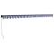 Auvent rétractable bleu et blanc 5x3 m tissu et aluminiumProfitez d'une boisson fraîche, d'une délicieuse gâterie ou d'une conversation agréable avec des amis sur votre terrasse tout en vous détendant sous cet incroyable auvent rétractable ! Matériau durable : le cadre de l'auvent est en aluminium enduit de poudre, ce qui est robuste et durable. Le tissu avec traitement de surface PU est résistant aux UV. Il protège votre famille ou vos invités des rayons UV et de la lumière éblouissante du soleil. Auvent rétractable : l'auvent de porte est rétractable pour répondre à vos différents besoins. Il fournit une ombre rafraîchissante lorsqu'il est tendu et ne bloque pas la vue lorsqu'il est contracté. Conception murale : l'auvent de terrasse peut être facilement monté sur le mur à l'aide des supports muraux inclus et n'occupera pas d'espace au sol. Nombreuses applications : l'auvent rétractable présente un design simple et élégant qui s'intégrera parfaitement à votre maison ou dans un cadre commercial. Il convient à de nombreux endroits, tels que les balcons, les patios, les cours, les restaurants, les cafés, les magasins, etc. Les enfants doivent être surveillés pour s'assurer qu'ils ne jouent pas avec l'appareil.Tenez les enfants éloignés de la zone de montage. Attention : lisez attentivement les instructions avant l'utilisation et les conserver pour référence ultérieure.
