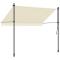 Auvent rétractable crème 250x150 m tissu et acierProfitez d'une boisson fraîche, d'une délicieuse gâterie ou d'une conversation agréable avec des amis sur votre terrasse tout en vous détendant sous cet auvent rétractable ! Matériau durable : le cadre du store de terrasse est fabriqué en acier, ce qui est robuste et durable. Le tissu avec traitement de surface PU est résistant aux UV. Il évitera à votre famille ou à vos invités d'être exposés aux rayons UV et à la lumière éblouissante du soleil. Fonction rétractable : grâce à la manivelle de la poignée, l'auvent de fenêtre est rétractable pour répondre à vos différents besoins. Il fournit de l'ombre rafraîchissante lorsque vous vous étirez et ne bloque pas la vue lorsqu'il est rétracté aussi. Hauteur réglable : la hauteur des tiges de support peut être réglée entre 210 et 300 cm pour s'adapter à une large gamme de hauteurs de fenêtres et de portes. Nombreuses applications : l'auvent extensible présente un design simple et élégant qui s'intégrera bien dans votre maison ou environnement commercial. Il convient à une variété d'endroits, tels que les balcons, les patios, les cours, les restaurants, les cafés, les magasins, et plus encore.