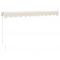 Auvent rétractable crème 3,5x2,5 m tissu et aluminiumProfitez d'une boisson fraîche, d'une délicieuse gâterie ou d'une conversation agréable avec des amis sur votre terrasse tout en vous détendant sous cet incroyable auvent rétractable ! Matériau durable : le cadre de l'auvent est en aluminium enduit de poudre, ce qui est robuste et durable. Le tissu avec traitement de surface PU est résistant aux UV. Il protège votre famille ou vos invités des rayons UV et de la lumière éblouissante du soleil.Auvent rétractable : l'auvent de porte est rétractable pour répondre à vos différents besoins. Il fournit une ombre rafraîchissante lorsqu'il est tendu et ne bloque pas la vue lorsqu'il est contracté.Conception murale : l'auvent de terrasse peut être facilement monté sur le mur à l'aide des supports muraux inclus et n'occupera pas d'espace au sol.Nombreuses applications : l'auvent rétractable présente un design simple et élégant qui s'intégrera parfaitement à votre maison ou dans un cadre commercial. Il convient à de nombreux endroits, tels que les balcons, les patios, les cours, les restaurants, les cafés, les magasins, etc. Les enfants doivent être surveillés pour s'assurer qu'ils ne jouent pas avec l'appareil.Tenez les enfants éloignés de la zone de montage. Attention : lisez attentivement les instructions avant l'utilisation et les conserver pour référence ultérieure.