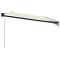 Auvent rétractable crème 5x3 m tissu et aluminiumProfitez d'une boisson fraîche, d'une délicieuse gâterie ou d'une conversation agréable avec des amis sur votre terrasse tout en vous détendant sous cet incroyable auvent rétractable ! Matériau durable : le cadre de l'auvent est en aluminium enduit de poudre, ce qui est robuste et durable. Le tissu avec traitement de surface PU est résistant aux UV. Il protège votre famille ou vos invités des rayons UV et de la lumière éblouissante du soleil. Auvent rétractable : l'auvent de porte est rétractable pour répondre à vos différents besoins. Il fournit une ombre rafraîchissante lorsqu'il est tendu et ne bloque pas la vue lorsqu'il est contracté. Conception murale : l'auvent de terrasse peut être facilement monté sur le mur à l'aide des supports muraux inclus et n'occupera pas d'espace au sol. Nombreuses applications : l'auvent rétractable présente un design simple et élégant qui s'intégrera parfaitement à votre maison ou dans un cadre commercial. Il convient à de nombreux endroits, tels que les balcons, les patios, les cours, les restaurants, les cafés, les magasins, etc. Les enfants doivent être surveillés pour s'assurer qu'ils ne jouent pas avec l'appareil.Tenez les enfants éloignés de la zone de montage. Attention : lisez attentivement les instructions avant l'utilisation et les conserver pour référence ultérieure.