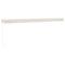 Auvent rétractable crème 5x3 m tissu et aluminiumProfitez d'une boisson fraîche, d'une délicieuse gâterie ou d'une conversation agréable avec des amis sur votre terrasse tout en vous détendant sous cet incroyable auvent rétractable ! Matériau durable : le cadre de l'auvent est en aluminium enduit de poudre, ce qui est robuste et durable. Le tissu avec traitement de surface PU est résistant aux UV. Il protège votre famille ou vos invités des rayons UV et de la lumière éblouissante du soleil. Auvent rétractable : l'auvent de porte est rétractable pour répondre à vos différents besoins. Il fournit une ombre rafraîchissante lorsqu'il est tendu et ne bloque pas la vue lorsqu'il est contracté. Conception murale : l'auvent de terrasse peut être facilement monté sur le mur à l'aide des supports muraux inclus et n'occupera pas d'espace au sol. Nombreuses applications : l'auvent rétractable présente un design simple et élégant qui s'intégrera parfaitement à votre maison ou dans un cadre commercial. Il convient à de nombreux endroits, tels que les balcons, les patios, les cours, les restaurants, les cafés, les magasins, etc. Les enfants doivent être surveillés pour s'assurer qu'ils ne jouent pas avec l'appareil.Tenez les enfants éloignés de la zone de montage. Attention : lisez attentivement les instructions avant l'utilisation et les conserver pour référence ultérieure.