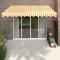 Auvent rétractable jaune et blanc 3x2,5 m tissu et aluminiumProfitez d'une boisson fraîche, d'une délicieuse gâterie ou d'une conversation agréable avec des amis sur votre terrasse tout en vous détendant sous cet incroyable auvent rétractable ! Matériau durable : le cadre de l'auvent est en aluminium enduit de poudre, ce qui est robuste et durable. Le tissu avec traitement de surface PU est résistant aux UV. Il protège votre famille ou vos invités des rayons UV et de la lumière éblouissante du soleil.Auvent rétractable : l'auvent de porte est rétractable pour répondre à vos différents besoins. Il fournit une ombre rafraîchissante lorsqu'il est tendu et ne bloque pas la vue lorsqu'il est contracté.Conception murale : l'auvent de terrasse peut être facilement monté sur le mur à l'aide des supports muraux inclus et n'occupera pas d'espace au sol.Nombreuses applications : l'auvent rétractable présente un design simple et élégant qui s'intégrera parfaitement à votre maison ou dans un cadre commercial. Il convient à de nombreux endroits, tels que les balcons, les patios, les cours, les restaurants, les cafés, les magasins, etc. Les enfants doivent être surveillés pour s'assurer qu'ils ne jouent pas avec l'appareil.Tenez les enfants éloignés de la zone de montage. Attention : lisez attentivement les instructions avant l'utilisation et les conserver pour référence ultérieure.