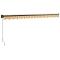 Auvent rétractable jaune et blanc 4x3 m tissu et aluminiumProfitez d'une boisson fraîche, d'une délicieuse gâterie ou d'une conversation agréable avec des amis sur votre terrasse tout en vous détendant sous cet incroyable auvent rétractable ! Matériau durable : le cadre de l'auvent est en aluminium enduit de poudre, ce qui est robuste et durable. Le tissu avec traitement de surface PU est résistant aux UV. Il protège votre famille ou vos invités des rayons UV et de la lumière éblouissante du soleil. Auvent rétractable : l'auvent de porte est rétractable pour répondre à vos différents besoins. Il fournit une ombre rafraîchissante lorsqu'il est tendu et ne bloque pas la vue lorsqu'il est contracté. Conception murale : l'auvent de terrasse peut être facilement monté sur le mur à l'aide des supports muraux inclus et n'occupera pas d'espace au sol. Nombreuses applications : l'auvent rétractable présente un design simple et élégant qui s'intégrera parfaitement à votre maison ou dans un cadre commercial. Il convient à de nombreux endroits, tels que les balcons, les patios, les cours, les restaurants, les cafés, les magasins, etc. Danger ! Ressort fort lors de l'ouverture. Ne retirez pas cette corde si vous n'avez pas terminé toutes les étapes d'assemblage avec tous les boulons fixés et l'article fixé au mur ! Avertissement! Faire attention en desserrant les bras, car ils sont sous tension ! Un relâchement soudain du bras d'un auvent à bras articulés peut provoquer des blessures. Avertissement : Les instructions d'utilisation doivent être lues avant d'utiliser le produit. Avertissement: Le fonctionnement dans des conditions de gel peut endommager le produit. Utilisation externe dans les bâtiments et autres travaux de construction. GPSR