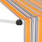 Auvent rétractable manuel 100 cm Rayures jaunes et bleuesCet auvent rétractable sera idéal devant la fenêtre, sur la terrasse, le balcon ou dans votre jardin. Cet auvent hydrofuge et anti-salissure et résistant aux UV et aux intempéries est fabriqué en polyester de qualité avec un revêtement PU. Le cadre en acier fort rend l'auvent robuste et durable. L'auvent en polyester facile à nettoyer peut être retiré et lavé. Grâce à la manivelle de la poignée, ce store est rétractable. La hauteur et l'angle du store peuvent également être ajustés. C'est facile à assembler. Cet auvent est le choix idéal pour votre espace de vie extérieur et peut être actionné manuellement. Ne l'installez jamais dans des endroits élevés et venteux, car le parasol pourrait tomber et blesser des personnes. Le store doit être rétracté si la vitesse du vent est supérieure à 27 km/h.