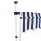 Auvent rétractable manuel 250 cm Rayures bleues et blanchesCet auvent rétractable sera idéal devant la fenêtre, sur la terrasse, le balcon ou dans votre jardin. Matériau durable : cet auvent hydrofuge et antisalissure et résistant aux UV et aux intempéries est fabriqué en polyester de haute qualité avec un revêtement de PU. Le cadre fort en acier rend l'auvent robuste et durable. L'auvent en polyester facile à nettoyer peut être retiré et lavé. Manivelle pratique : grâce à la manivelle de la poignée, ce store est rétractable. La manivelle pour monter et descendre le store peut être montée à gauche ou à droite. Design ajustable : la hauteur et l'angle du store peuvent également être ajustés. Utilisation polyvalente : ce produit peut non seulement être utilisé comme auvent normal, mais aussi pour couvrir complètement la fenêtre. Cet auvent est le choix idéal pour votre espace de vie extérieur et peut être actionné manuellement.