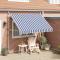 Auvent rétractable manuel 300 cm Rayures bleues et blanchesCet auvent rétractable sera idéal devant la fenêtre, sur la terrasse, le balcon ou dans votre jardin. Cet auvent hydrofuge et antisalissure et résistant aux UV et aux intempéries est fabriqué en polyester de haute qualité avec un revêtement de PU. Le cadre fort en acier rend l'auvent robuste et durable. L'auvent en polyester facile à nettoyer peut être retiré et lavé. Ce produit peut non seulement être utilisé comme auvent normal, mais aussi pour couvrir complètement la fenêtre. Grâce à la manivelle de la poignée, ce store est rétractable. La manivelle pour monter et descendre le store peut être montée à gauche ou à droite. La hauteur et l'angle du store peuvent également être ajustés. L'assemblage est simple. Cet auvent est le choix idéal pour votre espace de vie extérieur et peut être actionné manuellement.