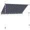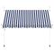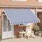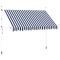 Auvent rétractable manuel 350 cm Rayures bleues et blanchesCet auvent rétractable sera idéal devant la fenêtre, sur la terrasse, le balcon ou dans votre jardin. Cet auvent hydrofuge et antisalissure et résistant aux UV et aux intempéries est fabriqué en polyester de haute qualité avec un revêtement de PU. Le cadre fort en acier rend l'auvent robuste et durable. L'auvent en polyester facile à nettoyer peut être retiré et lavé. Ce produit peut non seulement être utilisé comme auvent normal, mais aussi pour couvrir complètement la fenêtre. Grâce à la manivelle de la poignée, ce store est rétractable. La manivelle pour monter et descendre le store peut être montée à gauche ou à droite. La hauteur et l'angle du store peuvent également être ajustés. L'assemblage est simple. Cet auvent est le choix idéal pour votre espace de vie extérieur et peut être actionné manuellement.