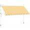 Auvent rétractable manuel 400 cm Rayures oranges et blanchesCet auvent rétractable sera idéal devant la fenêtre, sur la terrasse, le balcon ou dans votre jardin. Cet auvent hydrofuge et antisalissure et résistant aux UV et aux intempéries est fabriqué en polyester de haute qualité avec un revêtement de PU. Le cadre fort en acier rend l'auvent robuste et durable. L'auvent en polyester facile à nettoyer peut être retiré et lavé. Ce produit peut non seulement être utilisé comme auvent normal, mais aussi pour couvrir complètement la fenêtre. Grâce à la manivelle de la poignée, ce store est rétractable. La manivelle pour monter et descendre le store peut être montée à gauche ou à droite. La hauteur et l'angle du store peuvent également être ajustés. L'assemblage est simple. Cet auvent est le choix idéal pour votre espace de vie extérieur et peut être actionné manuellement.
