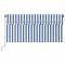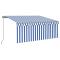 Auvent rétractable manuel avec store LED 3,5x2,5m Bleu et blancCréez un endroit agréable et frais dans vos espaces extérieurs avec cet auvent rétractable ! Cet auvent d'extérieur est construit avec un cadre en aluminium enduit de poudre résistant à la rouille, ce qui le rend léger mais robuste. Le tissu de l'auvent de patio est en polyester haute densité avec revêtement en PU, qui est résistant aux UV et à l'eau. De plus, l'angle et la hauteur peuvent être ajustés pour répondre à vos besoins spécifiques. Vous pouvez ouvrir et rétracter l'auvent en douceur avec la manivelle longue. De plus, les lampes à LED alimentées par l'énergie solaire assurent un éclairage nocturne économe en énergie. Le store vous protège des rayons UV et offre une protection de l'intimité. GPSR