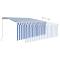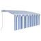 Auvent rétractable manuel avec store LED 3,5x2,5m Bleu et blanc Créez un endroit agréable et frais dans vos espaces extérieurs avec cet auvent rétractable ! Cet auvent d'extérieur est construit avec un cadre en aluminium enduit de poudre résistant à la rouille, ce qui le rend léger mais robuste. Le tissu de l'auvent de patio est en polyester haute densité avec revêtement en PU, qui est résistant aux UV et à l'eau. De plus, l'angle et la hauteur peuvent être ajustés pour répondre à vos besoins spécifiques. Vous pouvez ouvrir et rétracter l'auvent en douceur avec la manivelle longue. De plus, les lampes à LED alimentées par l'énergie solaire assurent un éclairage nocturne économe en énergie. Le store vous protège des rayons UV et offre une protection de l'intimité. Les enfants doivent être surveillés pour s'assurer qu'ils ne jouent pas avec l'appareil.Tenez les enfants éloignés de la zone de montage. Attention : lisez attentivement les instructions avant l'utilisation et les conserver pour référence ultérieure.