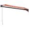 Auvent rétractable orange et marron 3,5x2,5m tissu et aluminiumProfitez d'une boisson fraîche, d'une délicieuse gâterie ou d'une conversation agréable avec des amis sur votre terrasse tout en vous détendant sous cet incroyable auvent rétractable ! Matériau durable : le cadre de l'auvent est en aluminium enduit de poudre, ce qui est robuste et durable. Le tissu avec traitement de surface PU est résistant aux UV. Il protège votre famille ou vos invités des rayons UV et de la lumière éblouissante du soleil. Auvent rétractable : l'auvent de porte est rétractable pour répondre à vos différents besoins. Il fournit une ombre rafraîchissante lorsqu'il est tendu et ne bloque pas la vue lorsqu'il est contracté. Conception murale : l'auvent de terrasse peut être facilement monté sur le mur à l'aide des supports muraux inclus et n'occupera pas d'espace au sol. Nombreuses applications : l'auvent rétractable présente un design simple et élégant qui s'intégrera parfaitement à votre maison ou dans un cadre commercial. Il convient à de nombreux endroits, tels que les balcons, les patios, les cours, les restaurants, les cafés, les magasins, etc. Les enfants doivent être surveillés pour s'assurer qu'ils ne jouent pas avec l'appareil.Tenez les enfants éloignés de la zone de montage. Attention : lisez attentivement les instructions avant l'utilisation et les conserver pour référence ultérieure.