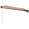 Auvent rétractable orange et marron 4,5x3 m tissu et aluminiumProfitez d'une boisson fraîche, d'une délicieuse gâterie ou d'une conversation agréable avec des amis sur votre terrasse tout en vous détendant sous cet incroyable auvent rétractable ! Matériau durable : le cadre de l'auvent est en aluminium enduit de poudre, ce qui est robuste et durable. Le tissu avec traitement de surface PU est résistant aux UV. Il protège votre famille ou vos invités des rayons UV et de la lumière éblouissante du soleil. Auvent rétractable : l'auvent de porte est rétractable pour répondre à vos différents besoins. Il fournit une ombre rafraîchissante lorsqu'il est tendu et ne bloque pas la vue lorsqu'il est contracté. Conception murale : l'auvent de terrasse peut être facilement monté sur le mur à l'aide des supports muraux inclus et n'occupera pas d'espace au sol. Nombreuses applications : l'auvent rétractable présente un design simple et élégant qui s'intégrera parfaitement à votre maison ou dans un cadre commercial. Il convient à de nombreux endroits, tels que les balcons, les patios, les cours, les restaurants, les cafés, les magasins, etc. Les enfants doivent être surveillés pour s'assurer qu'ils ne jouent pas avec l'appareil.Tenez les enfants éloignés de la zone de montage. Attention : lisez attentivement les instructions avant l'utilisation et les conserver pour référence ultérieure.