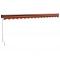 Auvent rétractable orange et marron 4x3 m tissu et aluminiumProfitez d'une boisson fraîche, d'une délicieuse gâterie ou d'une conversation agréable avec des amis sur votre terrasse tout en vous détendant sous cet incroyable auvent rétractable ! Matériau durable : le cadre de l'auvent est en aluminium enduit de poudre, ce qui est robuste et durable. Le tissu avec traitement de surface PU est résistant aux UV. Il protège votre famille ou vos invités des rayons UV et de la lumière éblouissante du soleil. Auvent rétractable : l'auvent de porte est rétractable pour répondre à vos différents besoins. Il fournit une ombre rafraîchissante lorsqu'il est tendu et ne bloque pas la vue lorsqu'il est contracté. Conception murale : l'auvent de terrasse peut être facilement monté sur le mur à l'aide des supports muraux inclus et n'occupera pas d'espace au sol. Nombreuses applications : l'auvent rétractable présente un design simple et élégant qui s'intégrera parfaitement à votre maison ou dans un cadre commercial. Il convient à de nombreux endroits, tels que les balcons, les patios, les cours, les restaurants, les cafés, les magasins, etc. Les enfants doivent être surveillés pour s'assurer qu'ils ne jouent pas avec l'appareil.Tenez les enfants éloignés de la zone de montage. Attention : lisez attentivement les instructions avant l'utilisation et les conserver pour référence ultérieure.