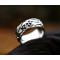 Bague en métal tête de mort et runes finement détaillées.