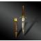 Fourreau en cuir, garnitures en laiton, bouton de rivure.