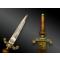 Lame droite à double tranchants et arrêt médiane, gravée de rinceaux dans un cartouche, datée « 1870 » et marquée « TOLEDE ».