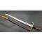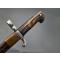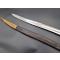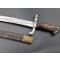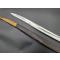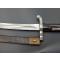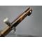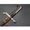 Rare baïonnette pour fusil de chasse double canons juxtaposés à forte poignée en corne à pommeau eu forme de bec. Bouton poussoir rond pour verrouillage au canon sur tenon de type Chassepot 1866. Croisière en fer à quillon recourbé, poinçonnée 5, forte douille de 38.5mm/19.9mm. Lame Yatagan à pans creux et arrête médiane vers la pointe à double tranchant. Fourreau en cuir noir à deux garnitures en laiton. Longueur de la lame : 42.5 cm - Longueur totale : 55 cm