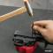 Le support est muni de broches de verrouillage placées sous le plateau. Une fois poinçonnées, les goupilles ne rouleront plus sur l'établi grâce une bande externe, qui prévient leur déplacement, tout en permettant à un aimant interne, logé dans l'une de ses faces internes, de retenir les éléments métalliques, ce qui évite qu'ils ne soient égarés.
