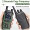 Appuyez sur le bouton "Menu" pour accéder à l'interface "FQSCAN". En appuyant à nouveau sur "Menu", le UV-21 Pro V2 recherchera automatiquement une fréquence d’émission radio ainsi qu’un code de confidentialité. Une fois la fréquence trouvée, appuyez une dernière fois sur "Menu" pour la mémoriser. Deux talkies-walkies peuvent ainsi communiquer instantanément, sans avoir besoin de la programmation traditionnelle.