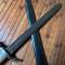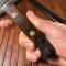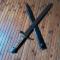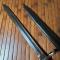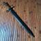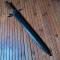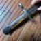 Plaquettes bois , bouton fonctionnel, lame entièrement bronzée, marquage net . Dans son fourreau bronzé noir de guerre .