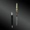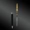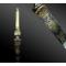 Lame droite en acier à simple tranchant, gravée sur le premier tiers, anciennement bleui, de trophées d’armes et de rinceaux rehaussé à l’or, le talon marqué d’entrelacs et palmes. Virole à volutes en argent poinçonné.
