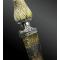 Le fourreau en bois est recouvert de cuir brun et est agrémenté de garnitures en argent poinçonné.