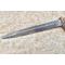 Bonne lame de 19.4 cm à arête médiane, gouttière supérieure sur les deux faces, et contre-tranchant à la pointe, traces d'un ancien marquage à figure humaine, non identifié.