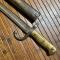 Belle poignée laiton bon état, lame yatagan marques d'oxydation , marquage lisible , bouton fonctionnel, marquage au dos de la lame avec deux poinçons sur la lame .