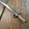 Belle poignée laiton bon état, lame yatagan avec quelques taches (peut être nettoyer) , bouton bien fonctionnel, marquage au dos de la lame avec deux poinçons et 3 poinçons au quillon tous bien visible,